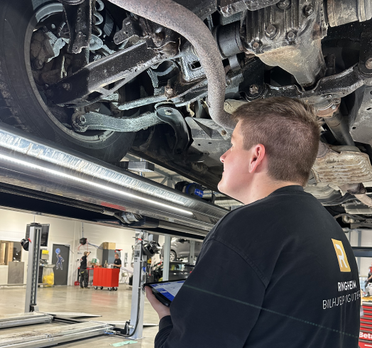 - Du har òg anledning til å vera med inn i hallen og kikka under bilen.